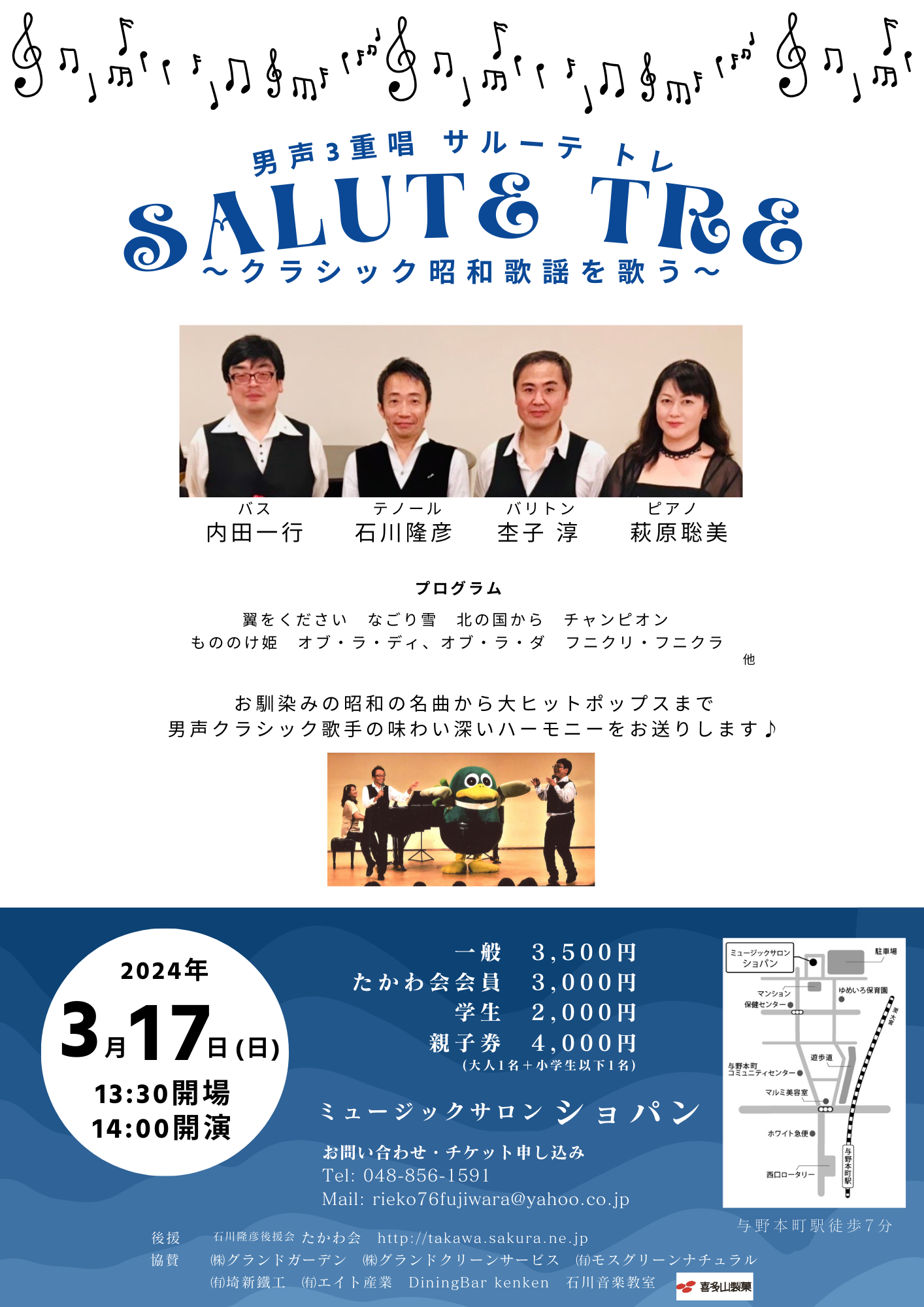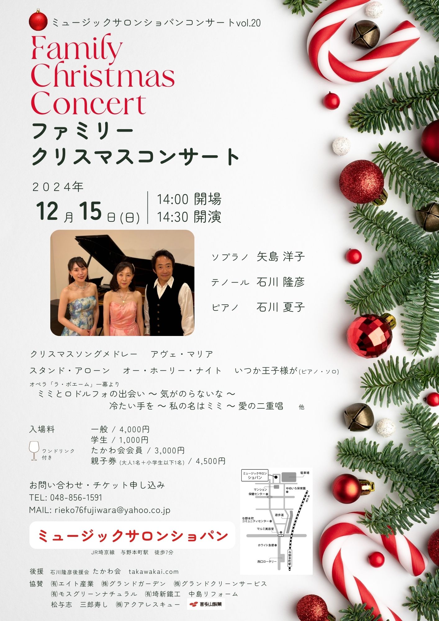 ソプラノ 矢島洋子 テノール 石川隆彦 ピアノ 石川夏子 |