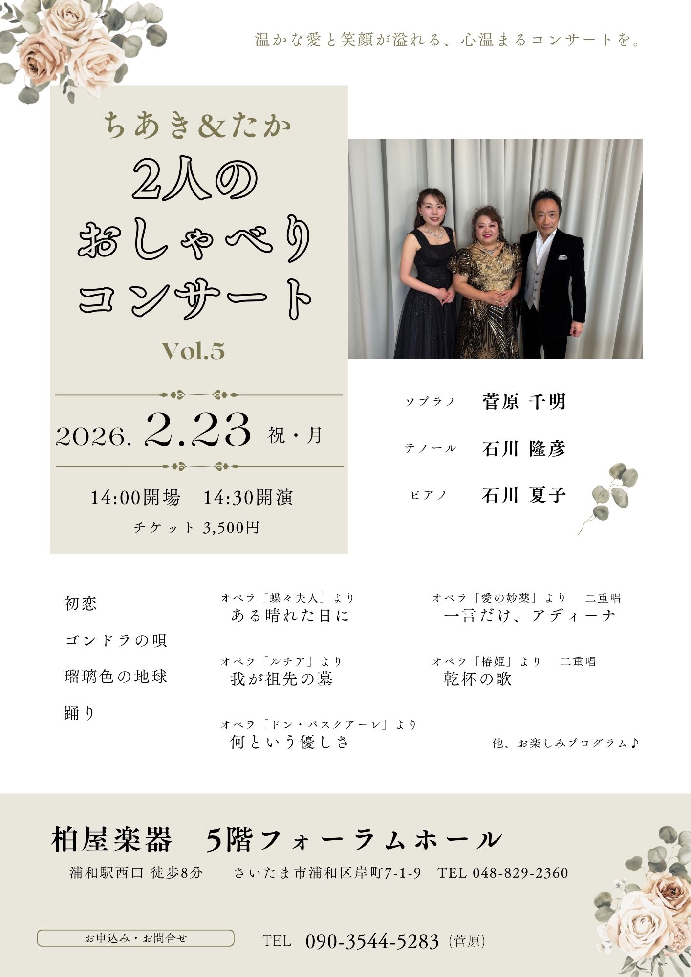 ソプラノ 菅原千明 テノール 石川隆彦 ピアノ 石川夏子 |